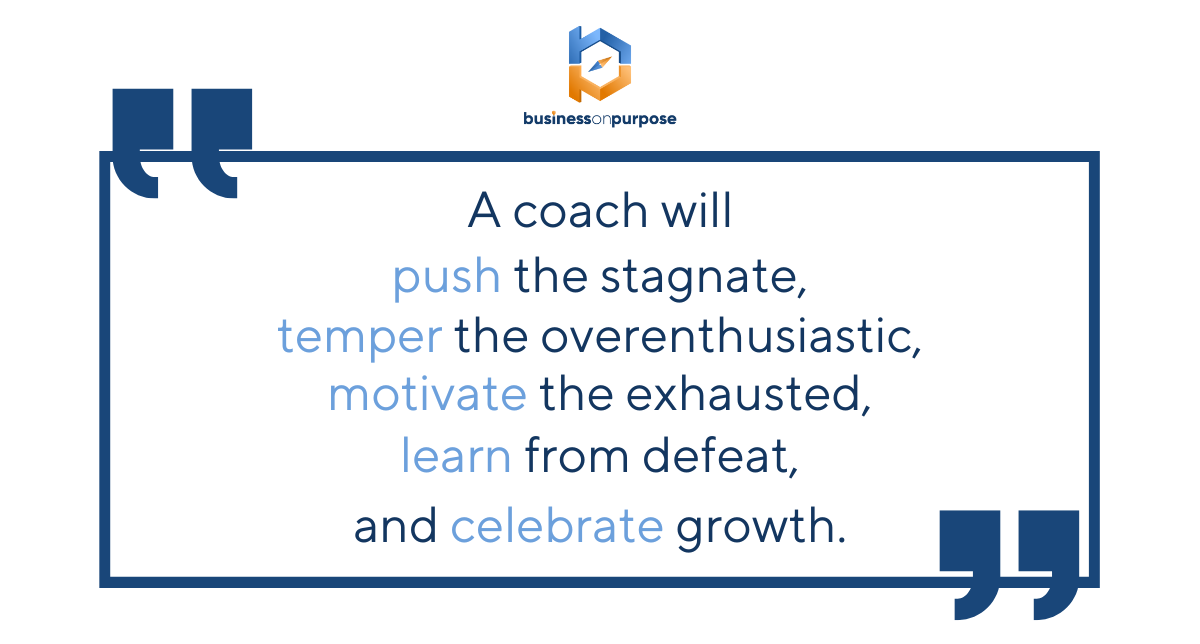 A coach will push the stagnate, temper the overenthusiastic, motivate the exhausted, learn from defeat, and celebrate growth.