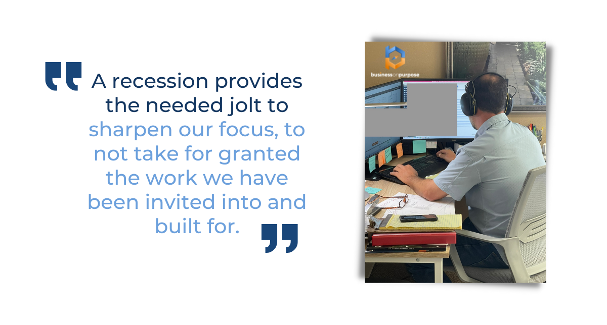 A recession provides the needed jolt to sharpen our focus, to not take for granted the work we have been invited into and built for.