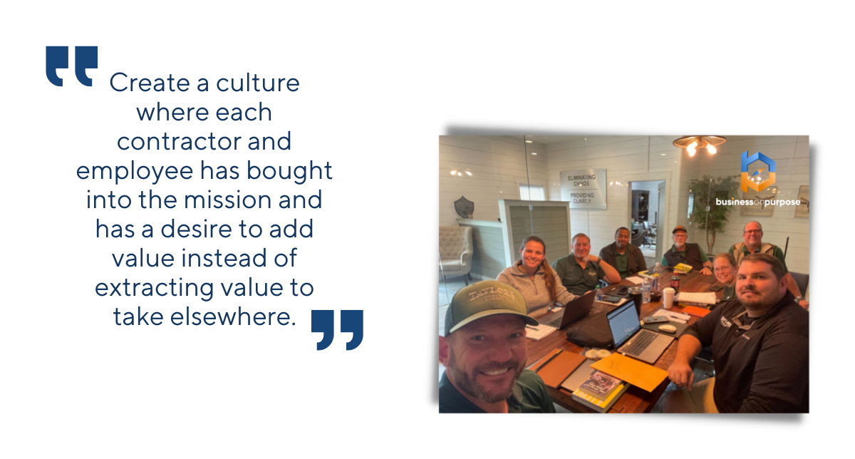 Second, this is all the more reason to work diligently to create a culture where each contractor and employee has bought into the mission and has a desire to add value instead of extracting value to take elsewhere.