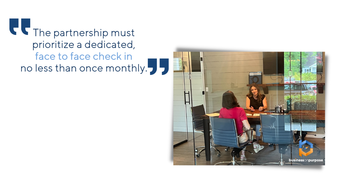 When a partnership has a collective vision, a means of regular communication, and clarity of day to day role, then the partnership has the necessary channels for partner communication setting the stage for a thoughtful flow of your ideas, thoughts, concerns, desires, and dreams to be heard, vetted, and decided-upon.