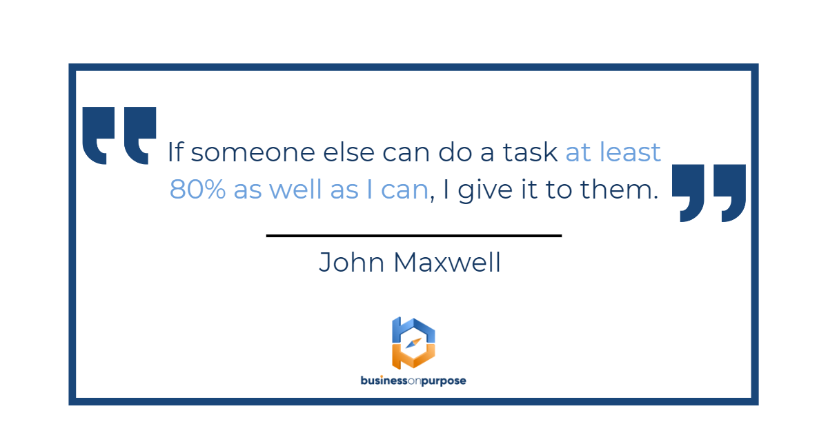 John Maxwell famously stated, “If someone else can do a task at least 80% as well as I can, I give it to them.”