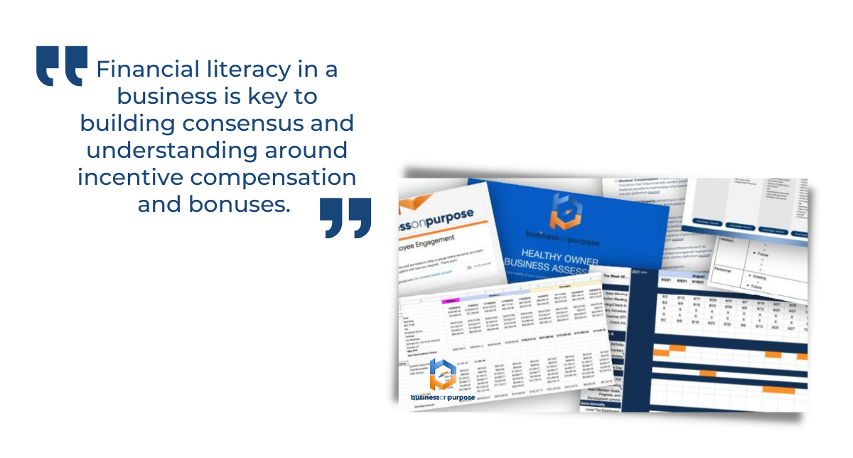 Financial literacy in a business is key to building consensus and understanding around incentive compensation and bonuses. A two-step approach will aid employees in understanding the basics of business finances.
