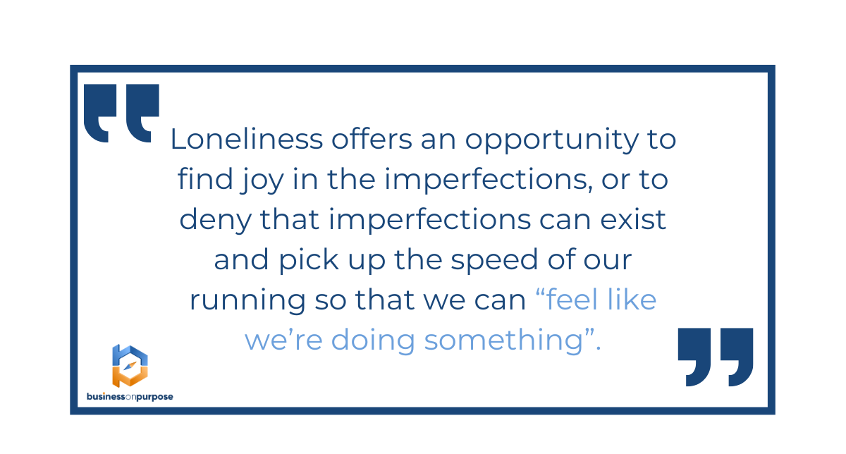Loneliness offers an opportunity to find joy in the imperfections, or to deny that imperfections can exist and pick up the speed of our running so that we can “feel like we’re doing something”.