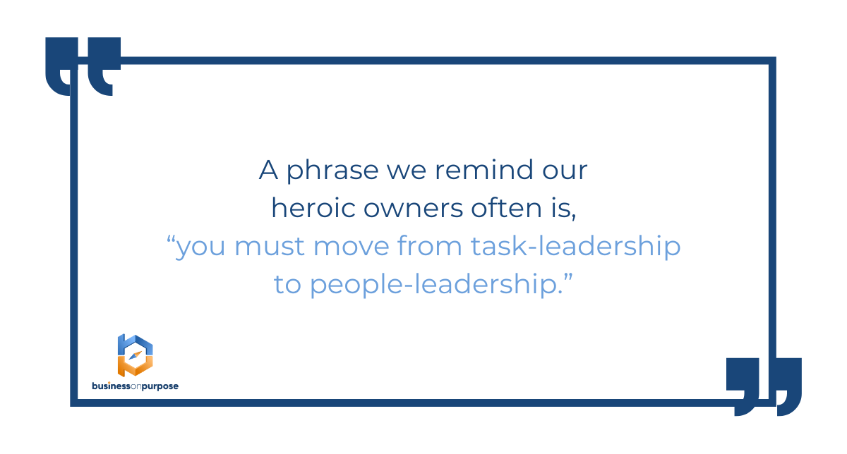 A phrase we remind our heroic owners often is, “you must move from task-leadership to people-leadership.”