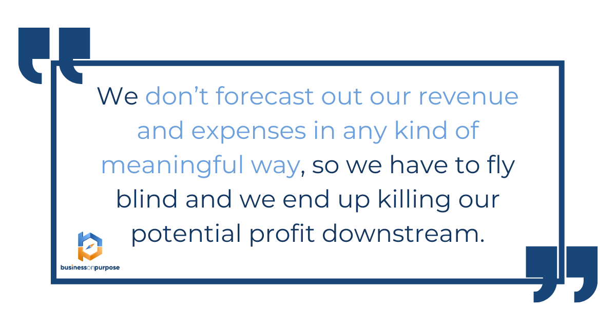 This is KILLING businesses every single day. We don’t forecast out our revenue and expenses in any kind of meaningful way, so we have to fly blind and we end up killing our potential profit downstream.