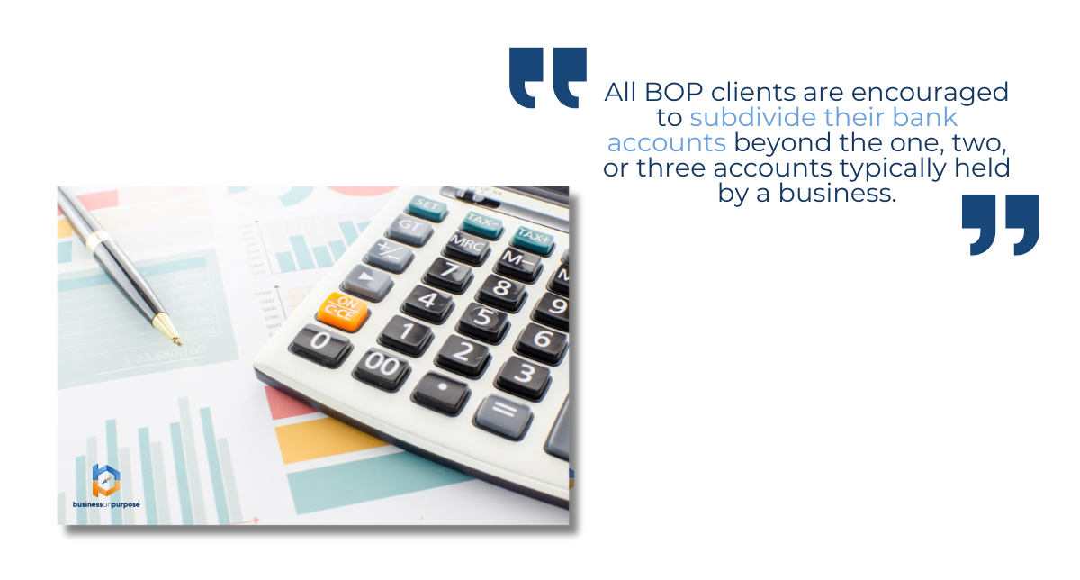 A BOP business will subdivide all receivables into 5 to 10 different bank accounts each designated for various business or profit purposes.