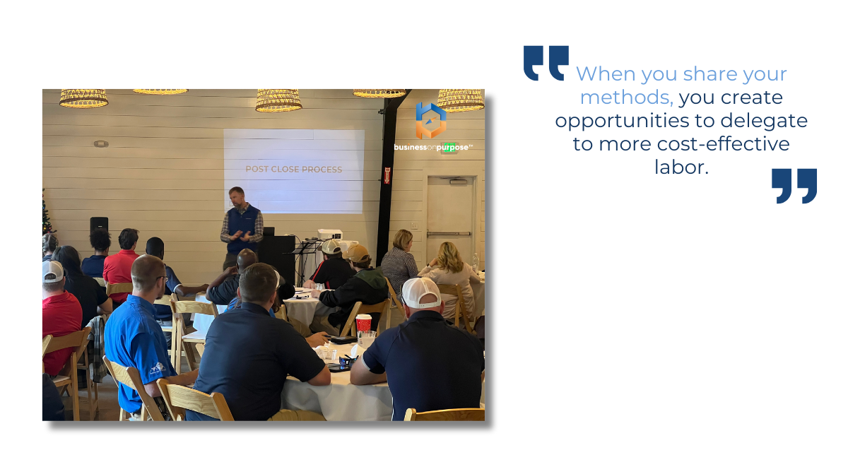 That’s why well-documented processes are so important. When you share your methods, you create opportunities to delegate to more cost-effective labor. It saves money, lets others contribute, and frees your time for high-value activities.