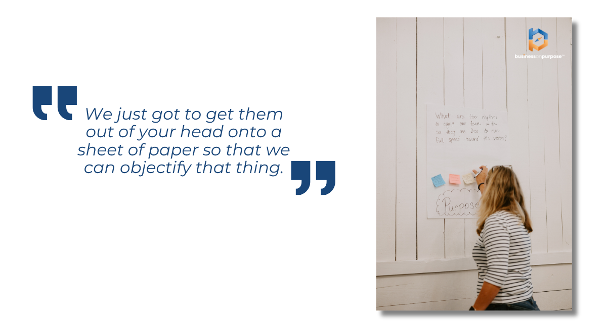 “We just got to get them out of your head onto a sheet of paper so that we can objectify that thing.”