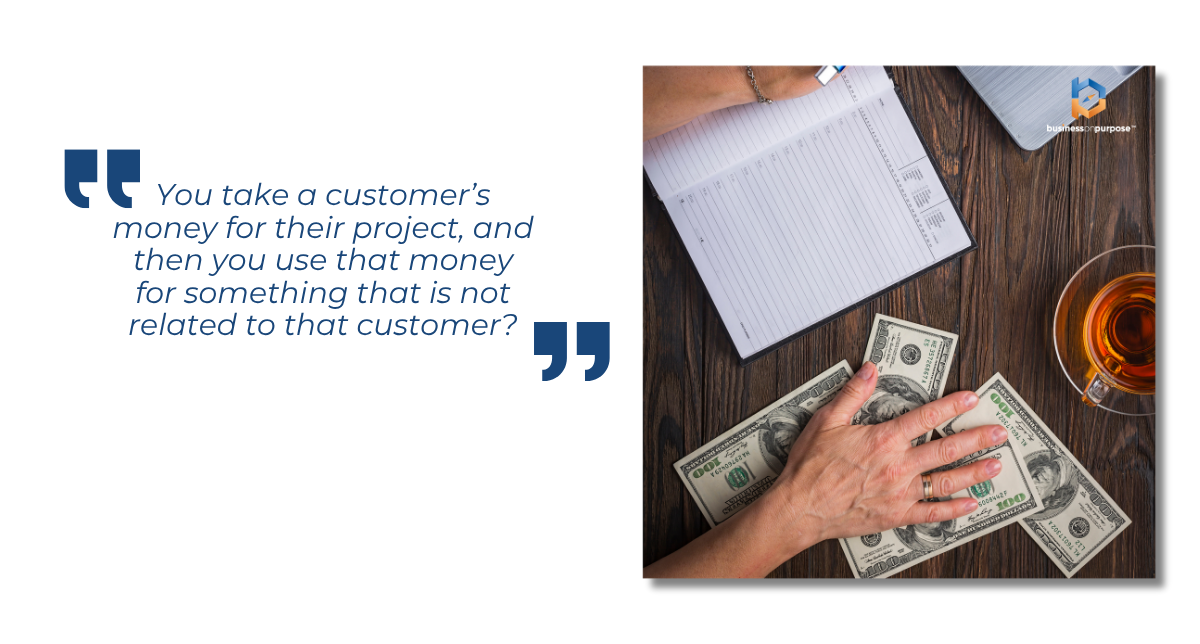 “You take a customer’s money for their project, and then you use that money for something that is not related to that customer?”